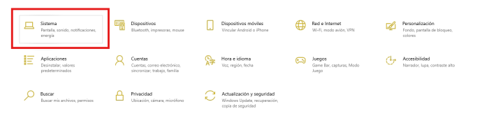 2. En la ventana que se abre, haz clic en la primera opción: Sistema.