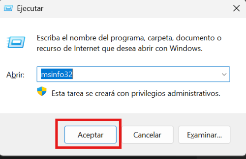 2. Escribe el comando msinfo32 y pulsa Enter.
