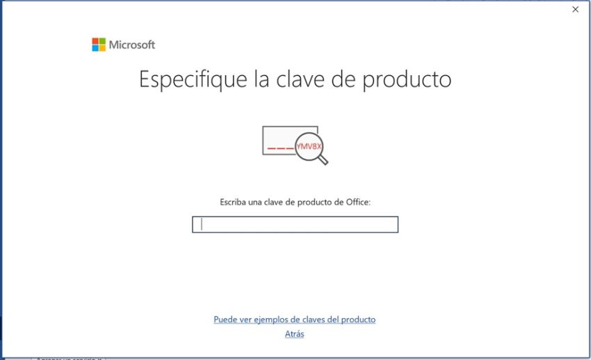 3. En el recuadro de “Escriba una clave de producto de Office”, ponga la licencia.