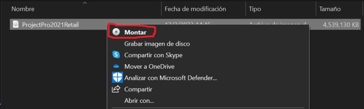 • Paso 3: Haga clic derecho sobre el archivo ProjectPro2021Retail.img.